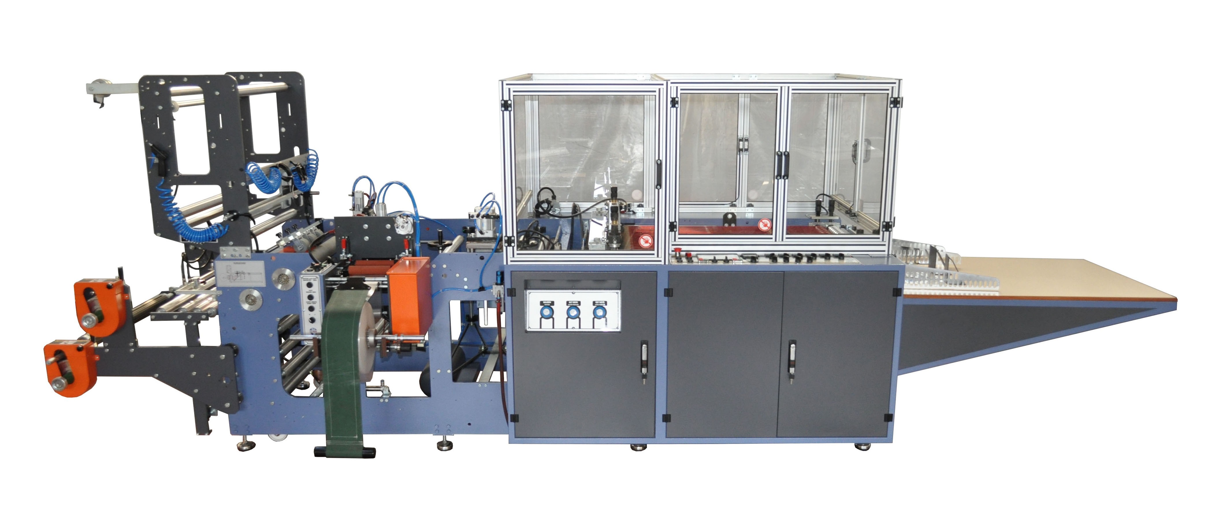 - Dzięki systemowi pasów sterowanych serwomotorami, pasy pracują synchronicznie z układem układania.